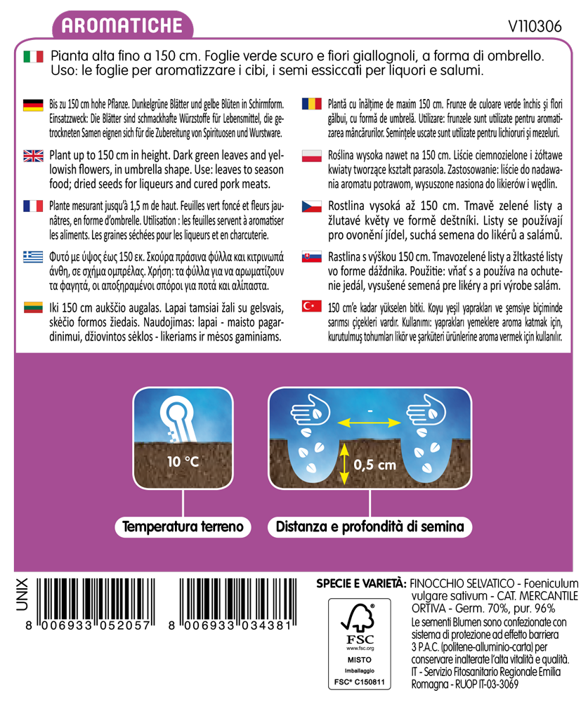 Forma una pianta alta fino a 150 cm. Le foglie sono di colore verde scuro ed i fiori giallognoli, a forma di ombrello. Viene usato in cucina per aromatizzare i cibi. I semi essiccati sono ottimi per la preparazione di liquori e insaccati.
